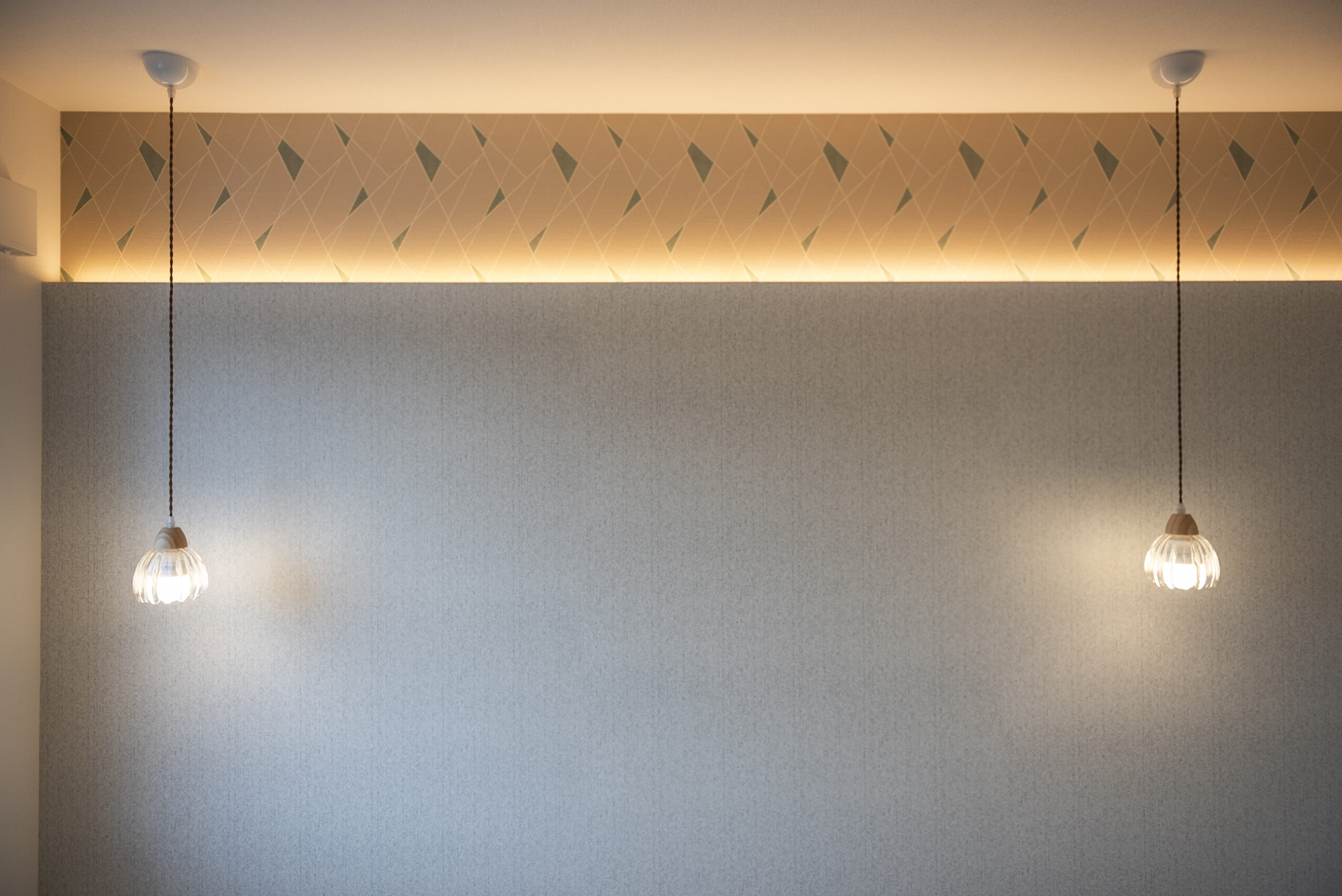 寝室の照明を間接照明とペンダントライトだけにすることで、夜は落ち着いた空間に。