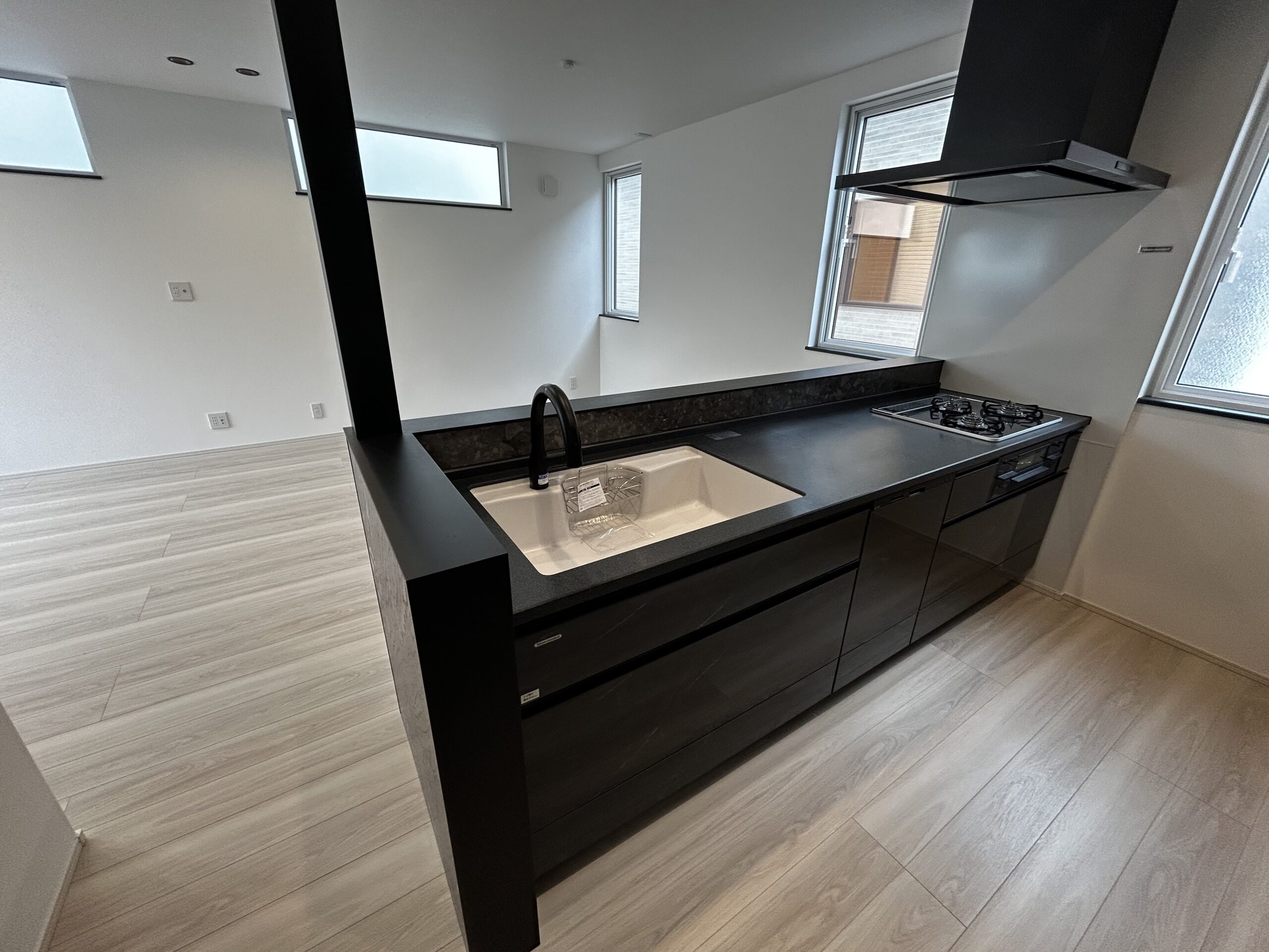 タカラスタンダードのキッチン。 天板もブラックで統一すると重厚感が出ます。