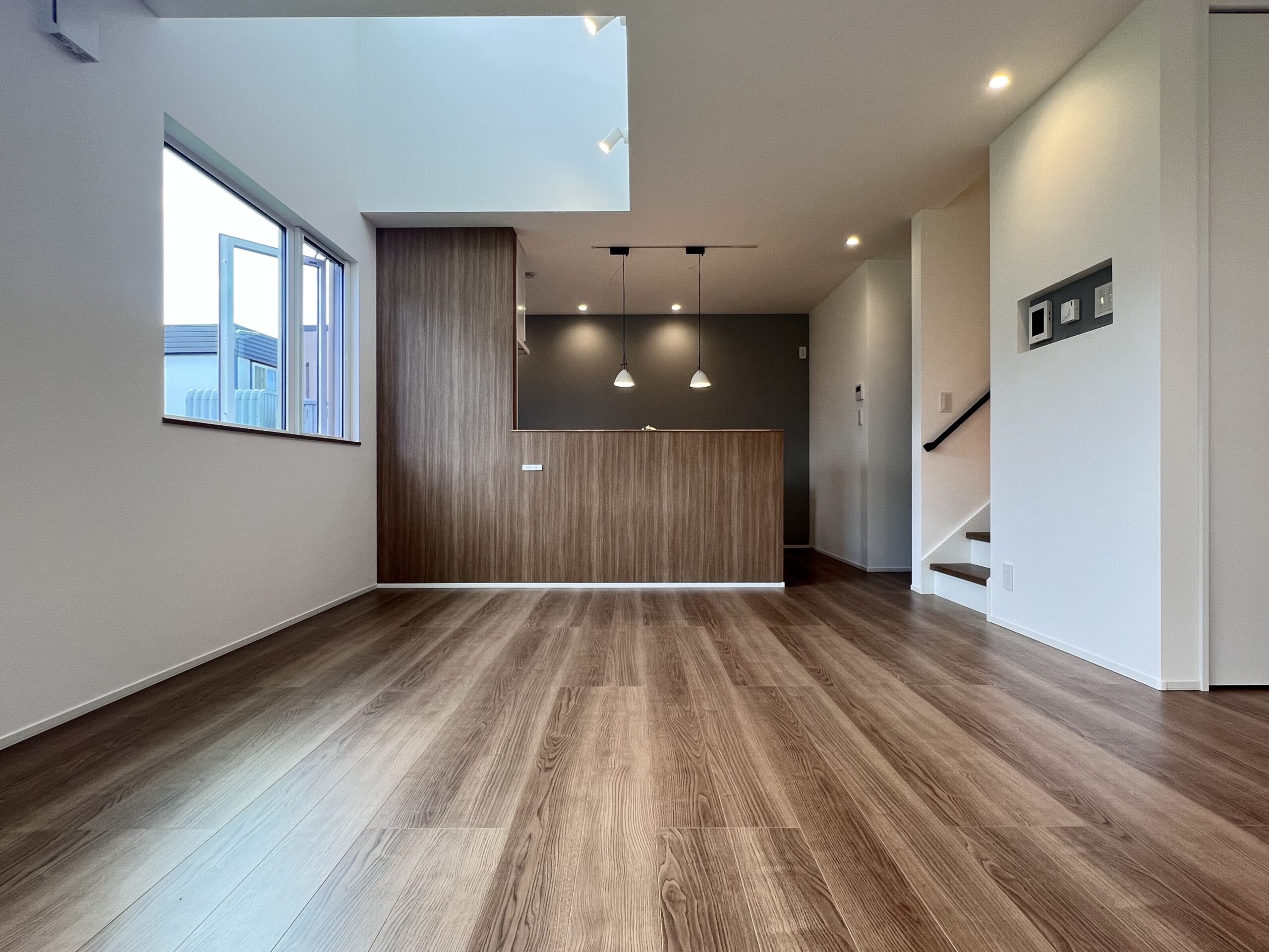 落ち着きのある木目調のリビングは、床暖房で足元からぬくもりを感じられます。