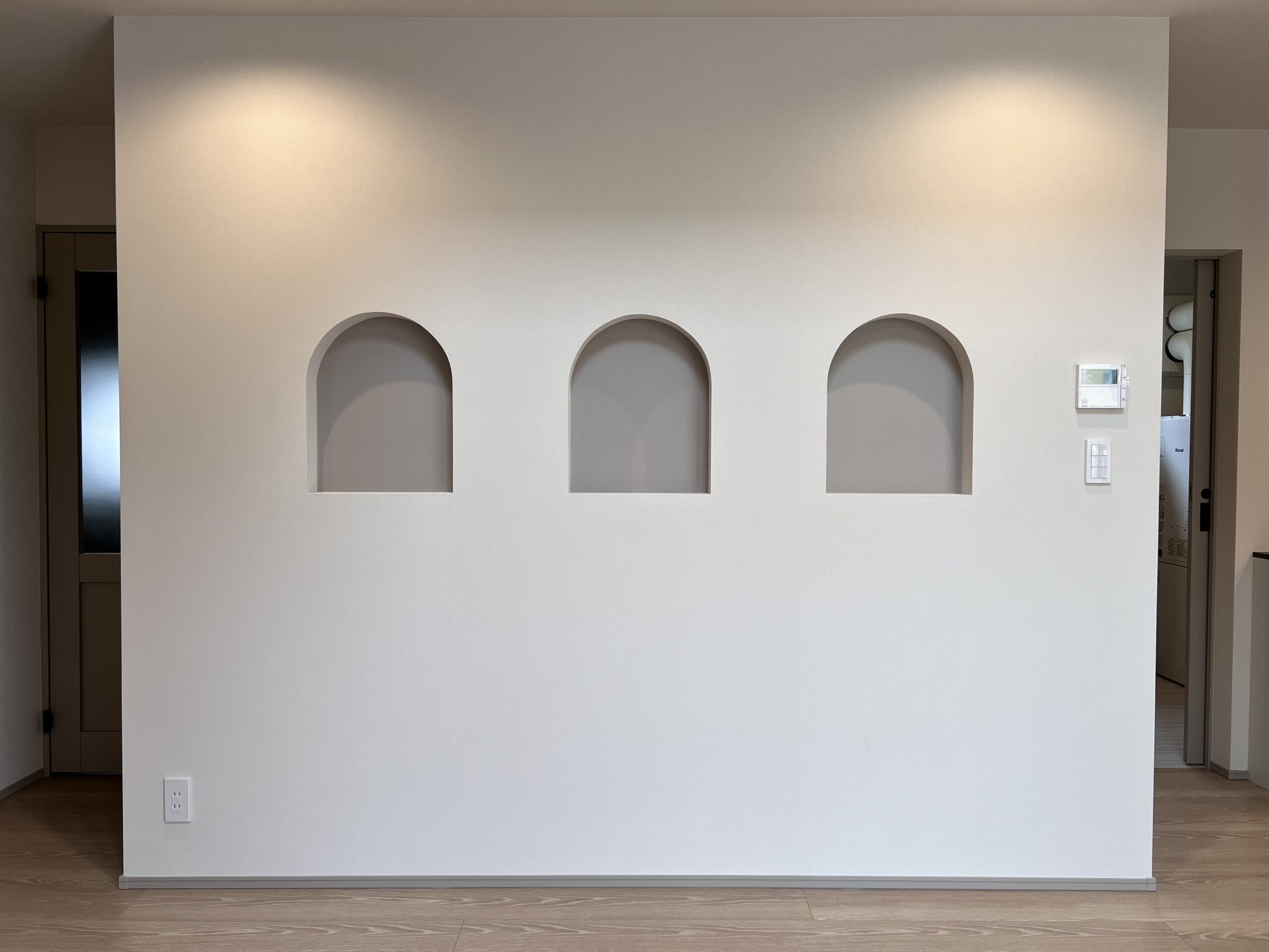 Rのかわいらしいニッチは空間のアクセントに。 思い出の写真を飾るのにも最適です。