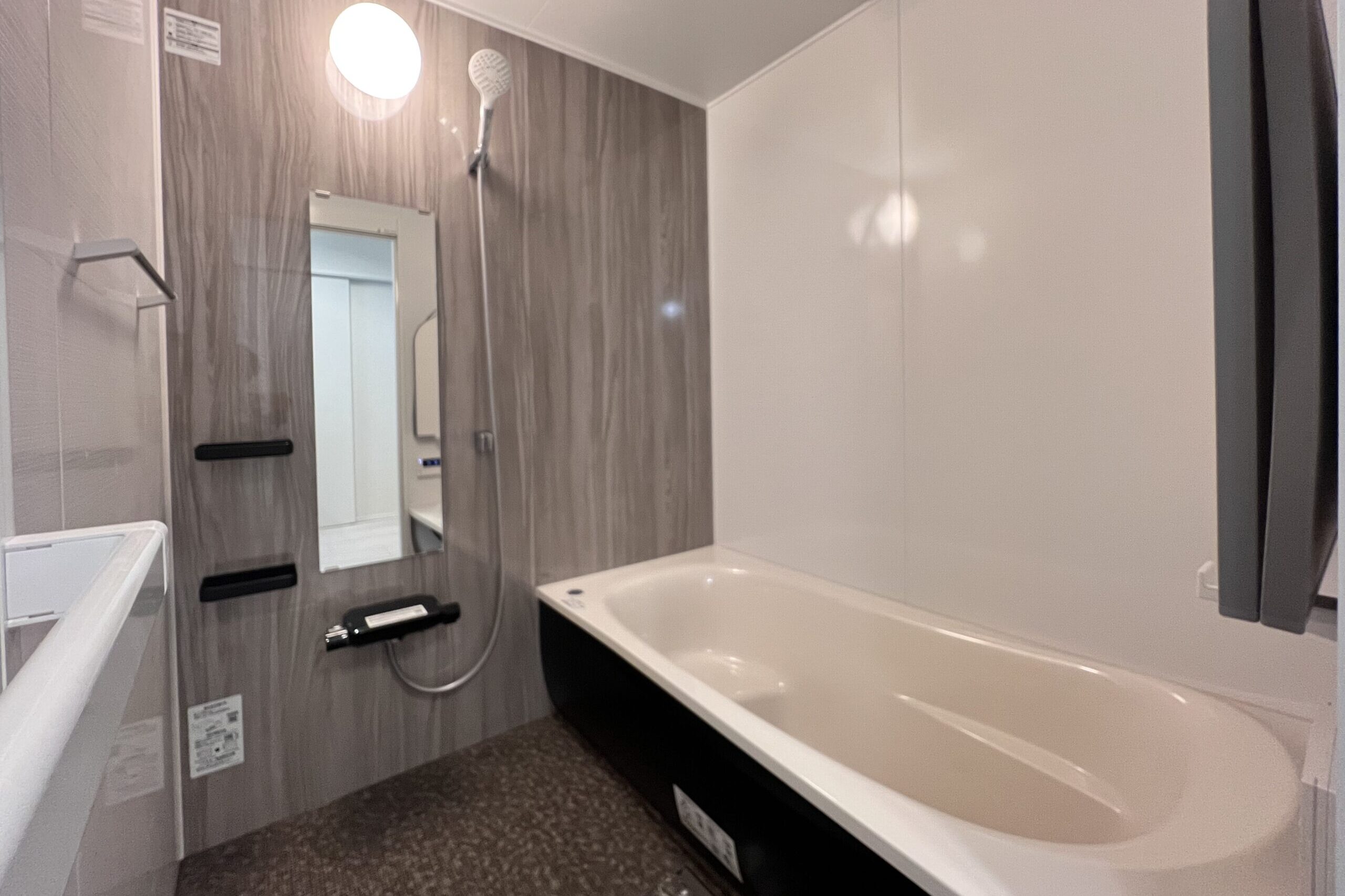 ユニットバスはTOTOが標準仕様。床には乾きやすくカビにくいほっカラリを使用しています。