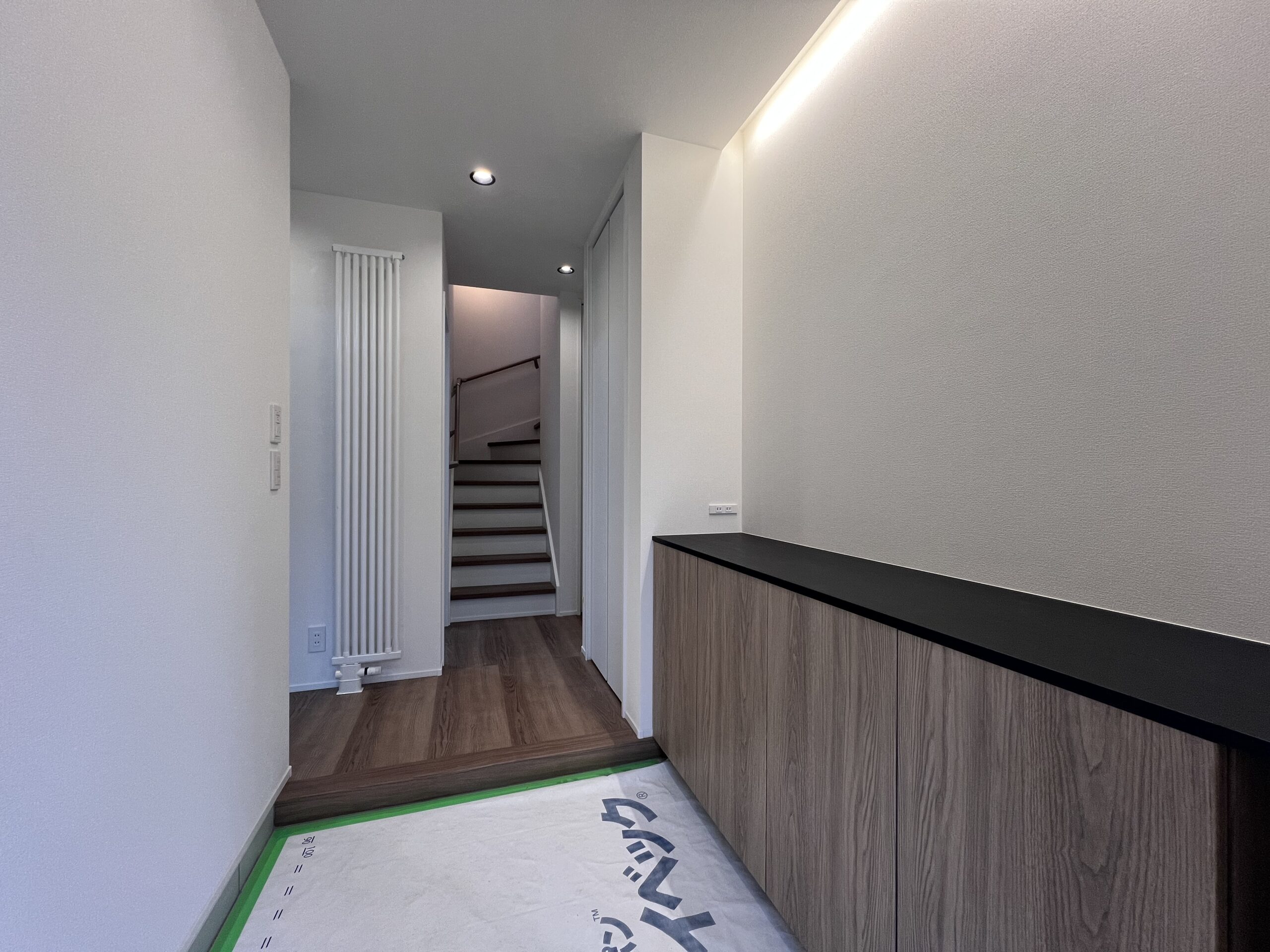 玄関収納の上に間接照明をつけることで 一気におしゃれな雰囲気に!