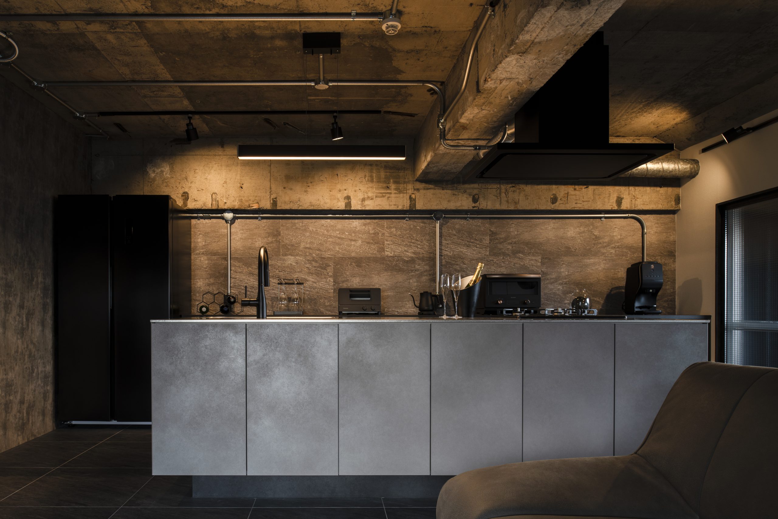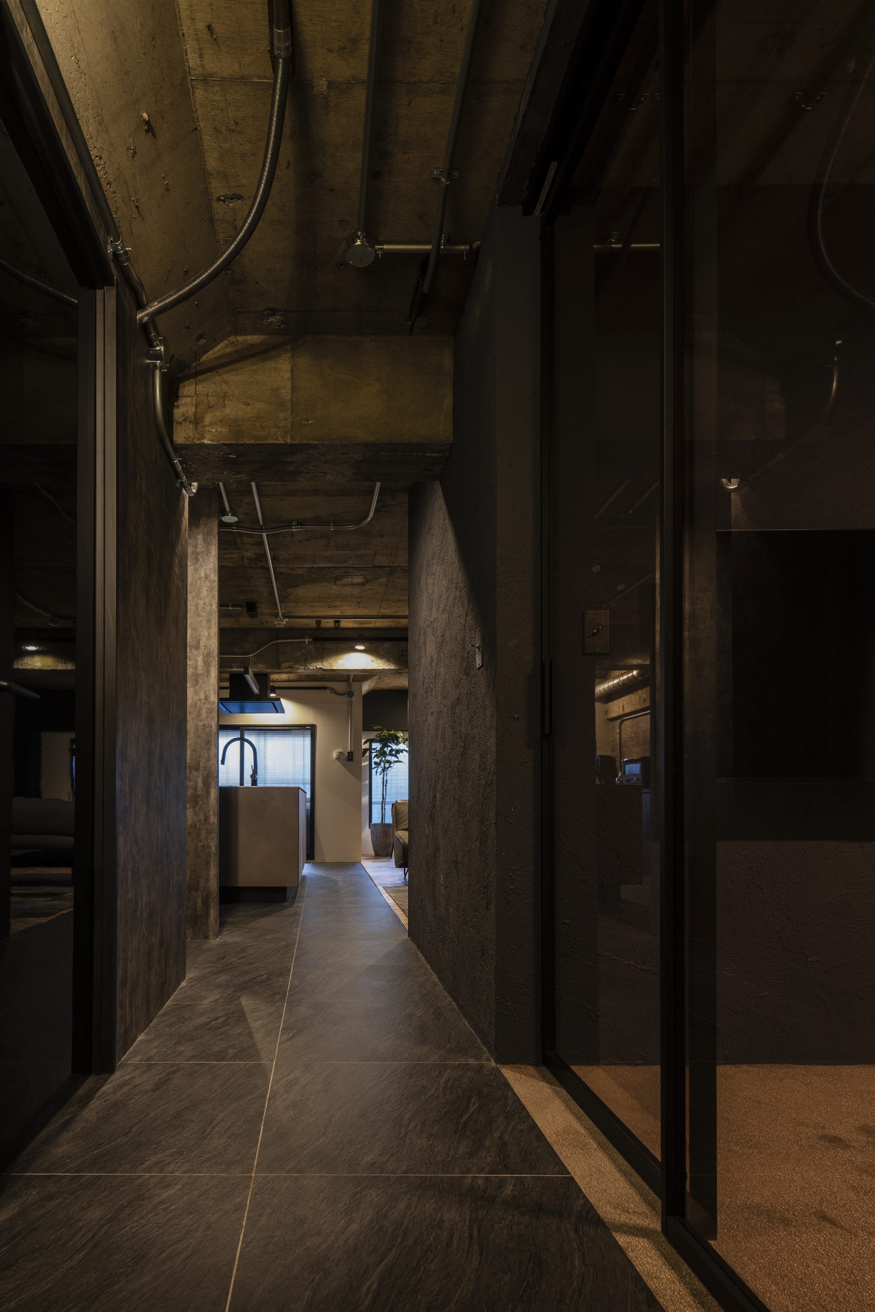 SRC造をいかして、下地のコンクリートをむき出しに