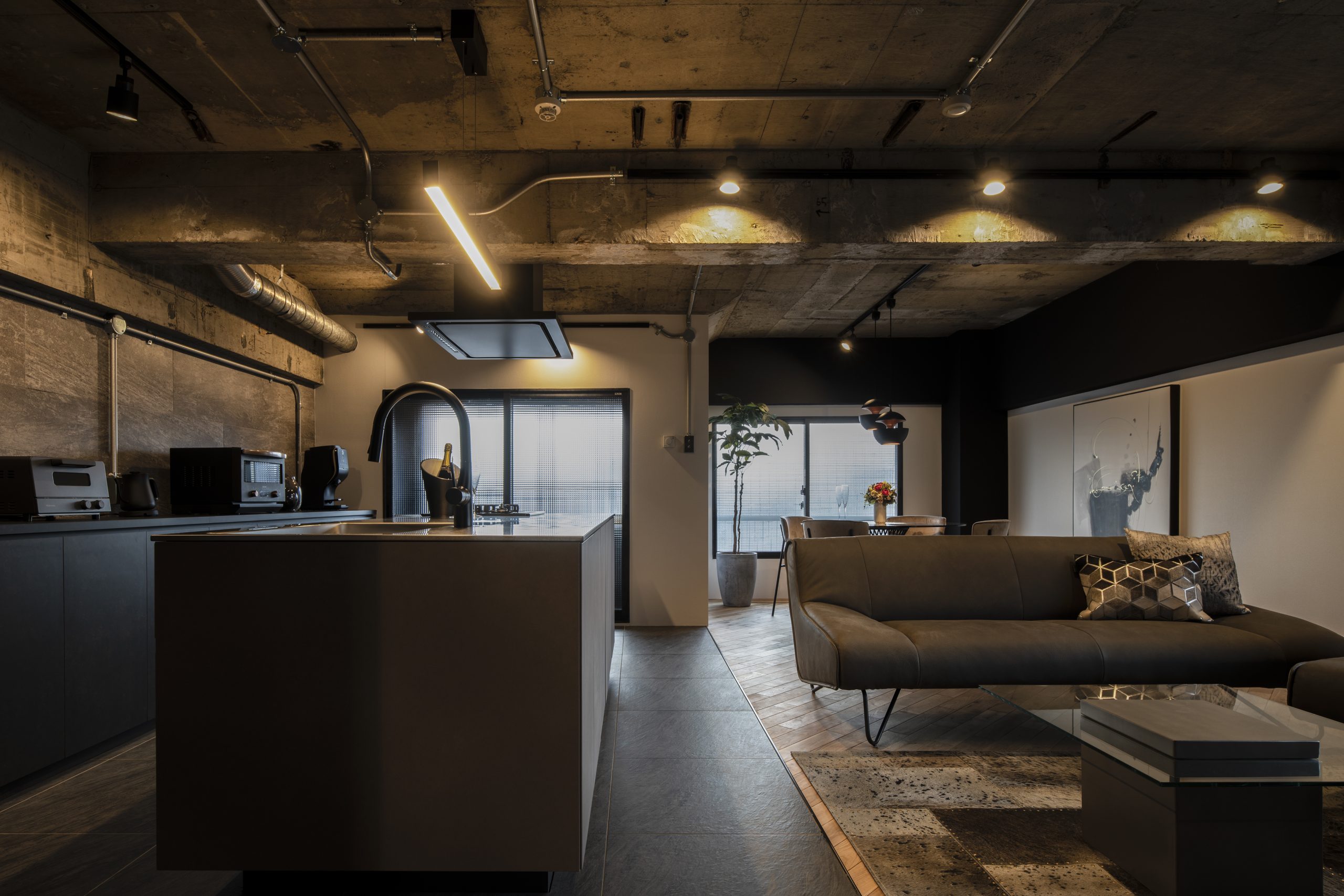 モノトーンでまとめて、黒のエッジが効いたかっこいい異空間です。